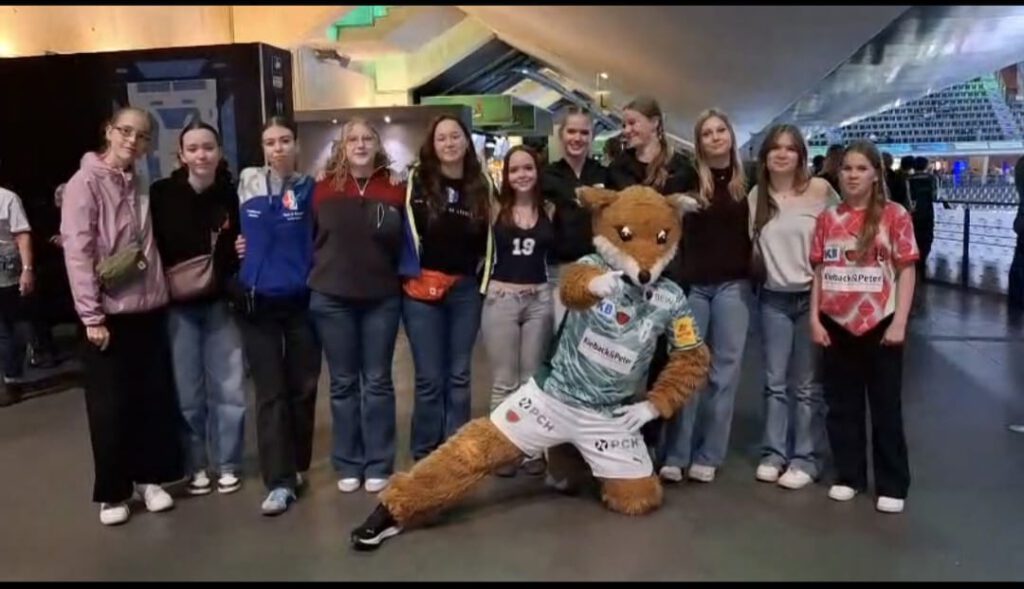 Mit einem von der Firma Schween gesponsorten Bus ging es danach nämlich zu einer bekannten Burgerkette, wo man sich für den weiteren Tag gemeinsam stärkte. Die Fahrt führte danach nach Berlin zum Bundesligaspiel der Füchse Berlin gegen den ThSV Eisenach (35:23), wo die Mannschaft Eindrücke vom Profihandball sammeln konnte. Ein Foto mit dem Maskottchen der Füchse „Fuchsi“ durfte dabei natürlich nicht fehlen.