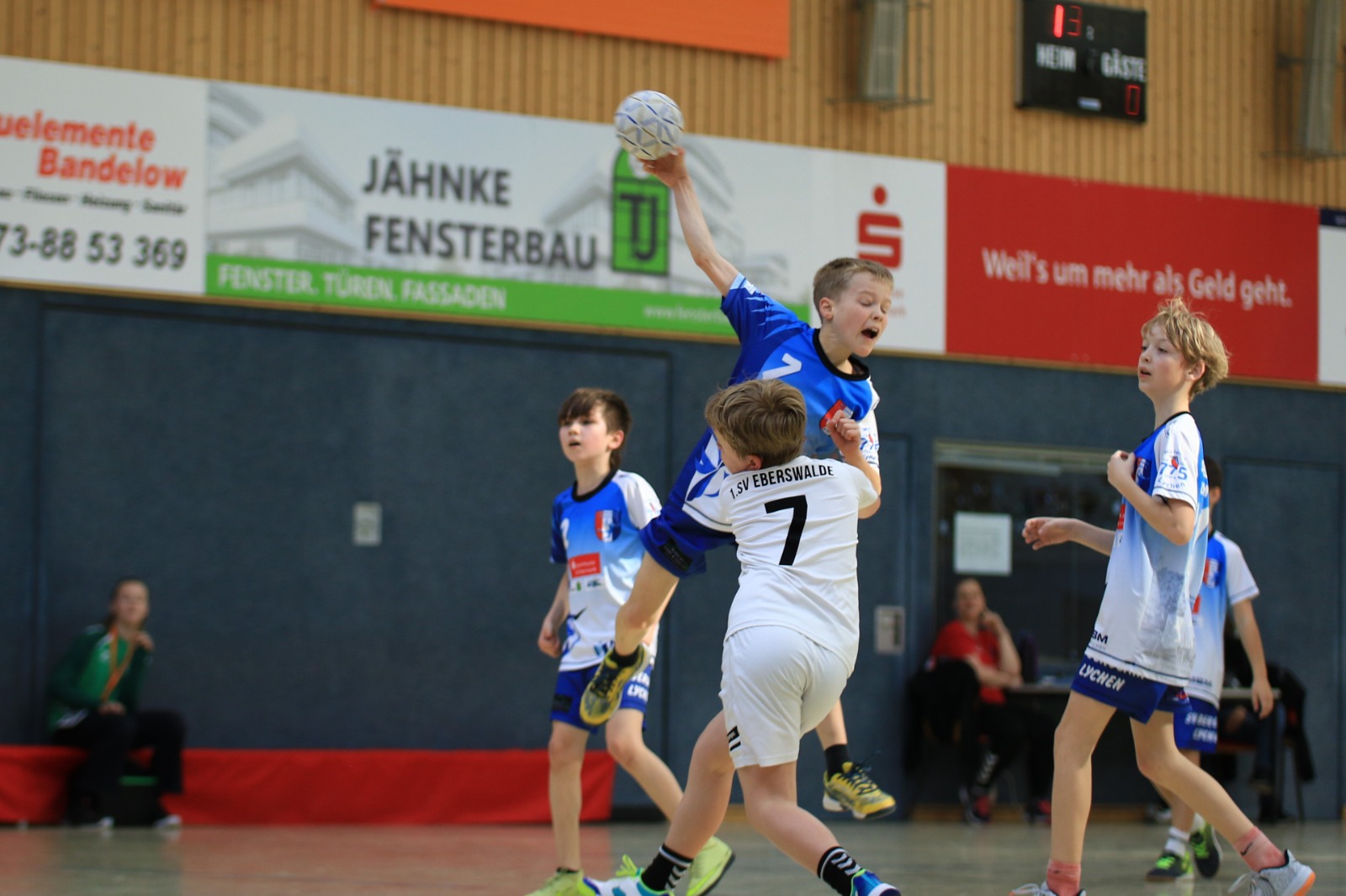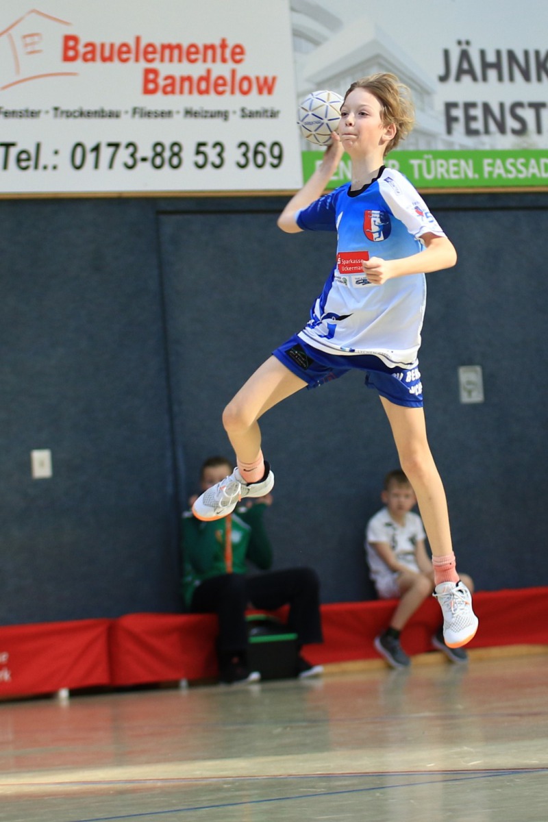 Die Jungen der E-Jugend hatten beim Heimspiel gegen den 1. SV Eberswalde II beim 40:7 keine Mühe. Die Mannschaft agierte auch in der Abwehr sehr effektiv, sodass die Gäste beim 21:0 sogar ohne eigenen Torerfolg in die Halbzeitpause gingen. Am häufigsten trafen Bohdan Bradulin (14) und Jona Terlitzki (10).