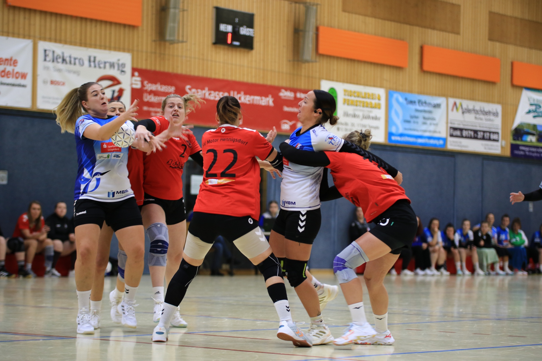 Im anschließenden Spiel zogen die Frauen des SV Berolina gegen den SV Motor Hennigsdorf den Kürzeren. Von beginn an lag die Mannschaft zurück, bewies aber im Spielverlauf Moral und kämpfte sich nach neun Toren Rückstand noch auf 19:25 heran. Gefährden konnte man den Gegner allerdings nicht. Für Berolina traf Lisa Kienast mit 7 Toren am häufigsten.