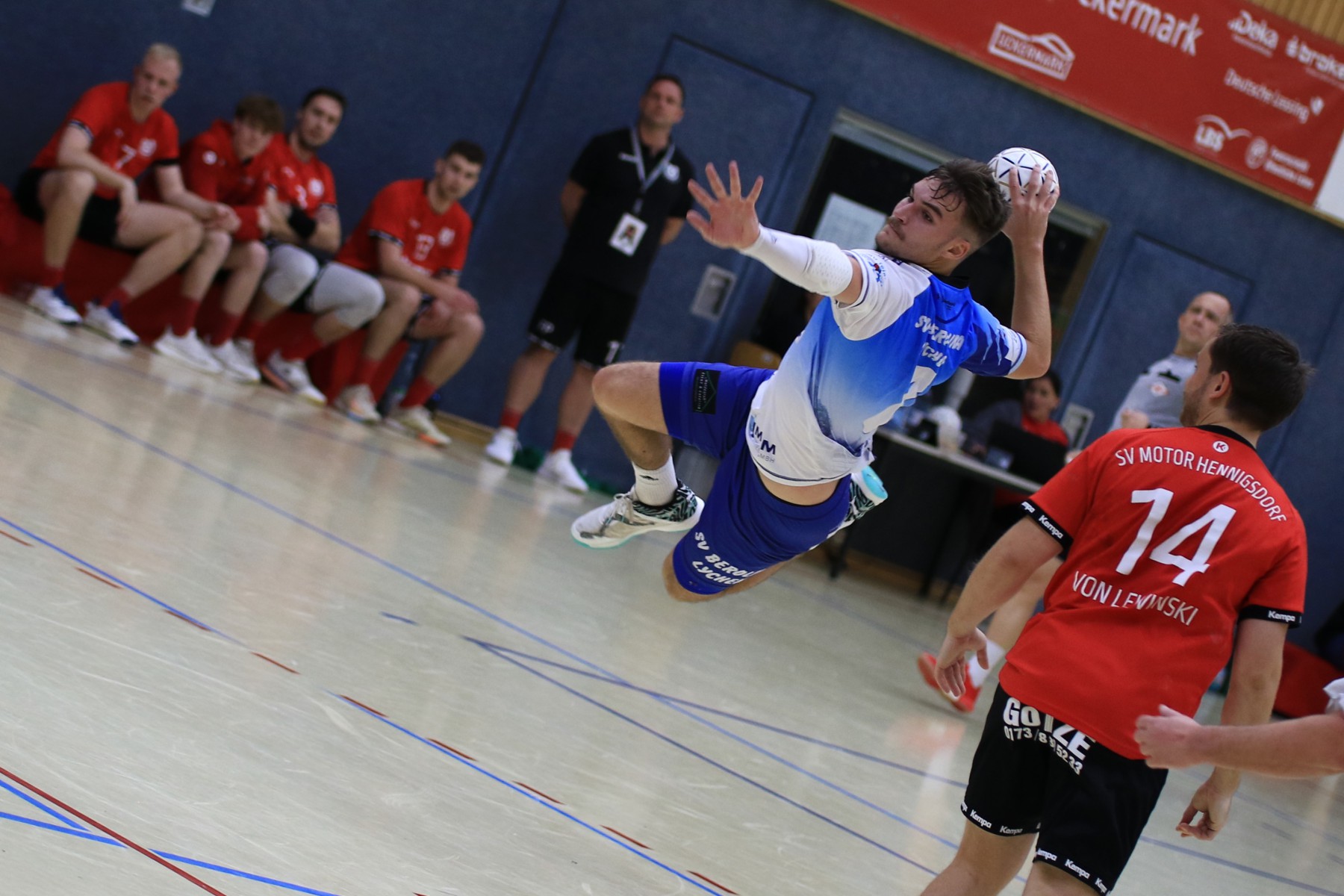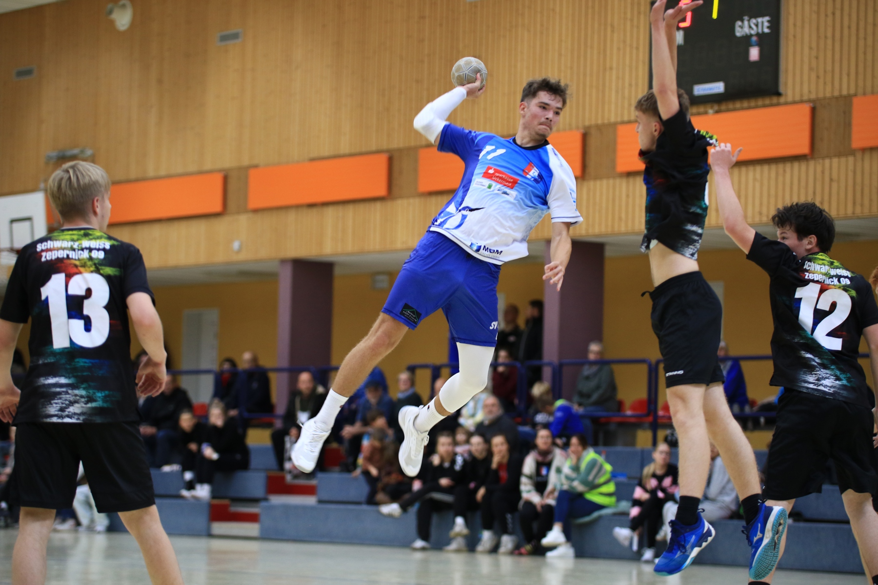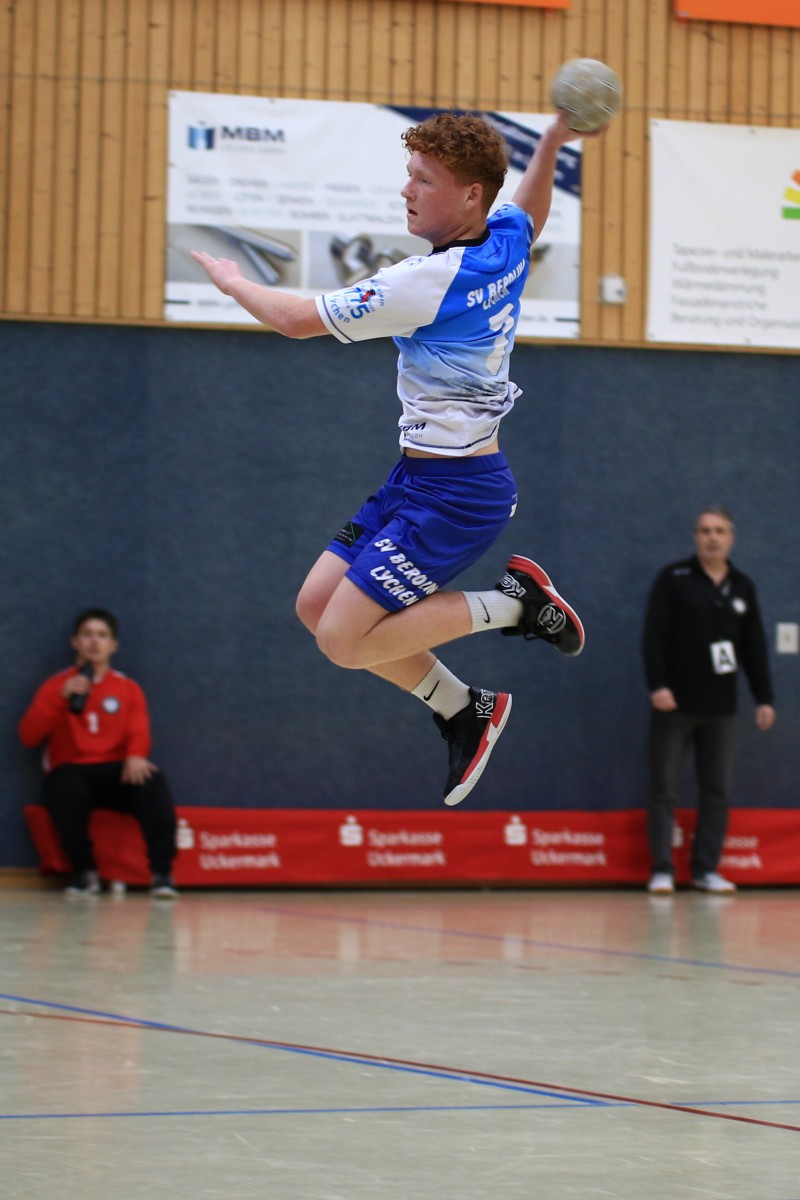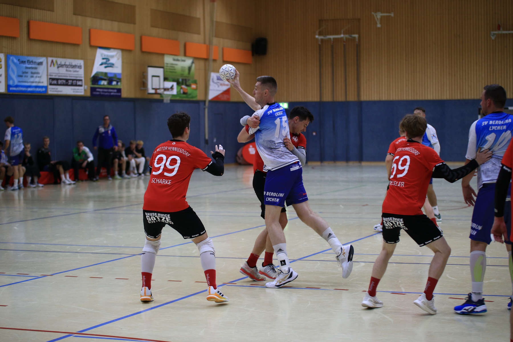 Auch die Männer der Verbandsligamannschaft hatte den SV Motor Hennigsdorf zu Gast, der mit 10:0 Punkten als Tabellenführer angereist war. Bis zur Pause verlief die Partie sehr ausgeglichen, die Führung wechselte, in den letzten Minuten vor der Halbzeit konnte sich Lychen dann leicht absetzen. Entschieden war beim 23:19 zur Pause aber noch nichts. Bis zur 55. Minute, es stand 36:33 schien für beide Teams noch alles möglich. Berolina bewahrte jedoch kühlen Kopf und setzte sich in der Schlussphase abermals ab und gewann am Ende noch recht deutlich mit 40:34. Großen Anteil daran hatten Mathis Loest und Luis Spaida im Tor sowie Lennard Jähnke mit insgesamt 10 Toren.