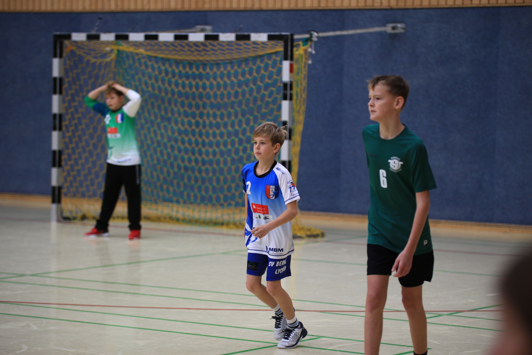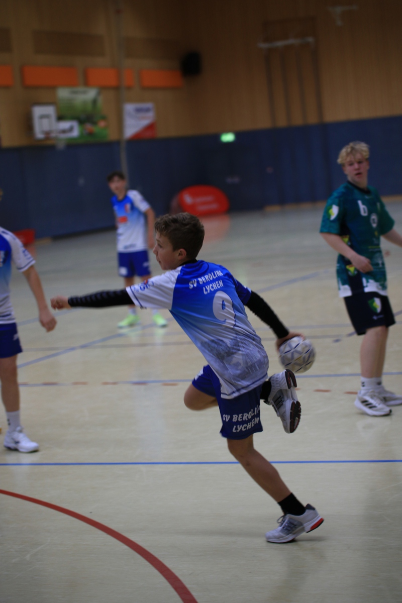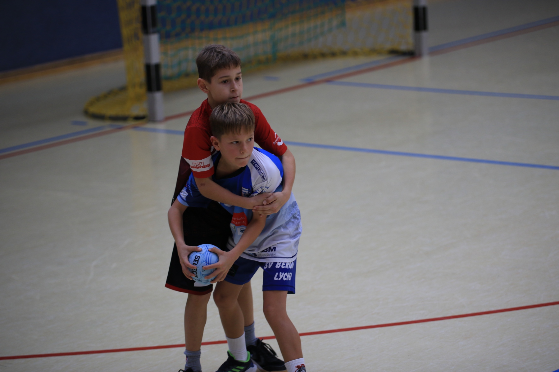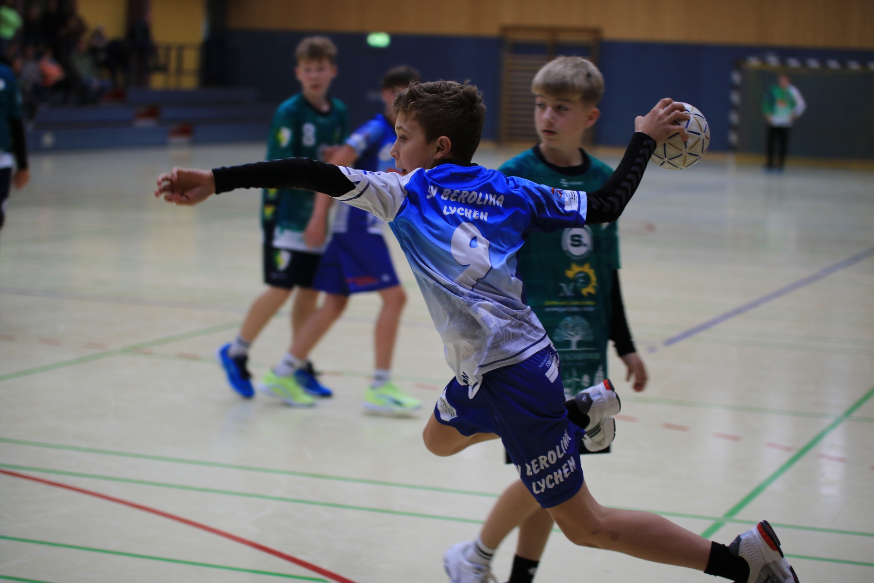 Als Nächstes lieferten sich die Mannschaften der männlichen E-Jugend des SV Berolina und des HSV Bernauer Bären II ein Spiel auf Augenhöhe, das Lychen am Ende denkbar knapp mit 21:20 für sich entscheiden konnte. Hier war Bohdan Bradulin mit sieben Toren am treffsichersten. Lychen bleibt mit 6:0 Punkten an der Tabellenspitze.