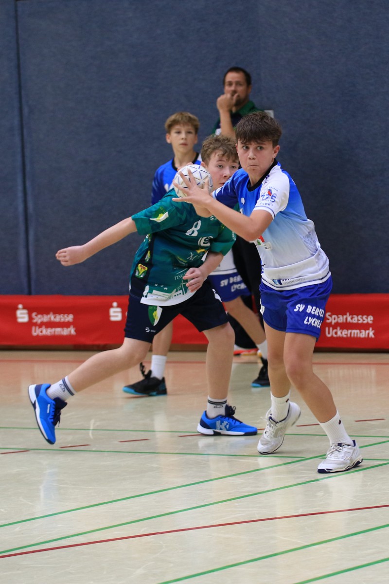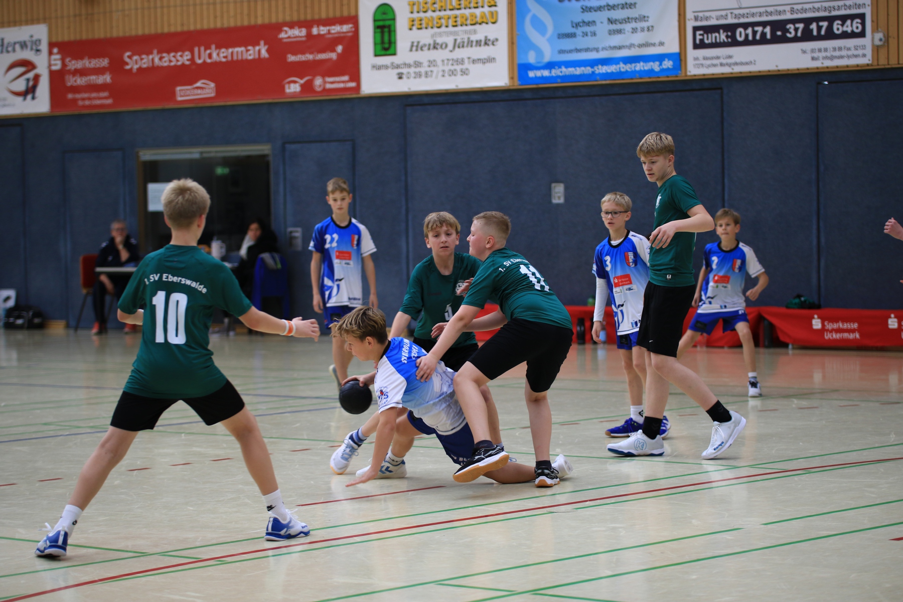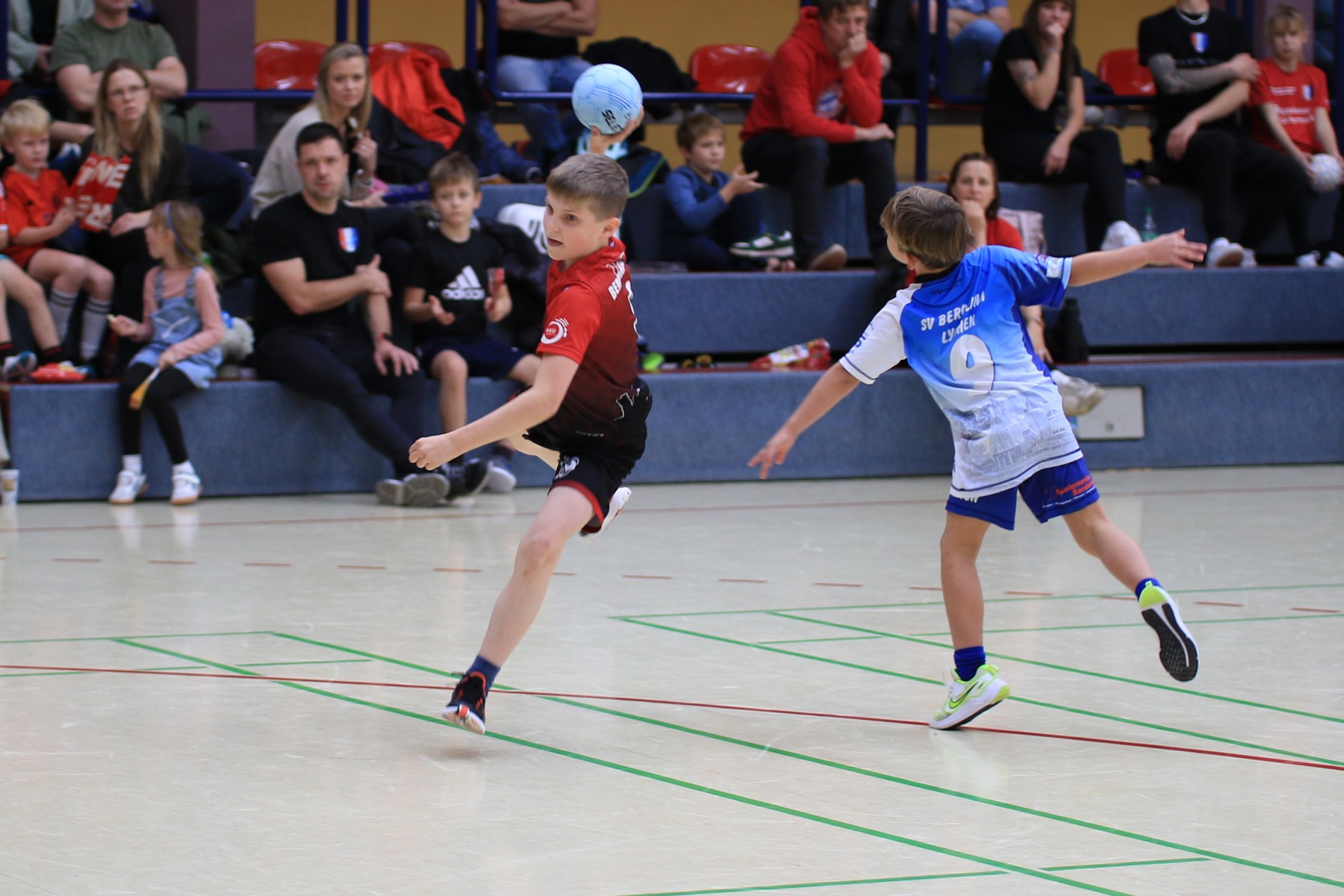 Als Nächstes lieferten sich die Mannschaften der männlichen E-Jugend des SV Berolina und des HSV Bernauer Bären II ein Spiel auf Augenhöhe, das Lychen am Ende denkbar knapp mit 21:20 für sich entscheiden konnte. Hier war Bohdan Bradulin mit sieben Toren am treffsichersten. Lychen bleibt mit 6:0 Punkten an der Tabellenspitze.