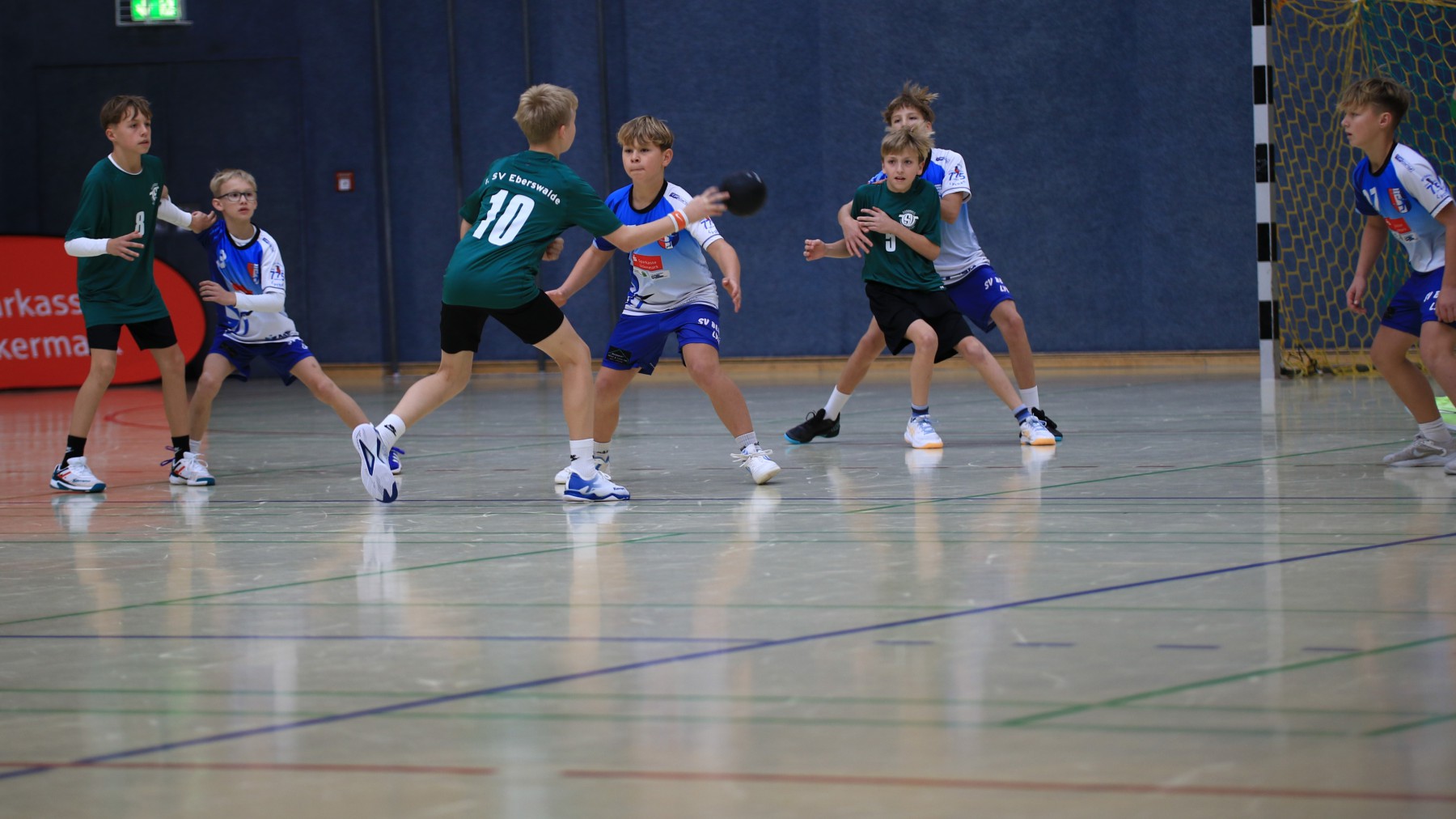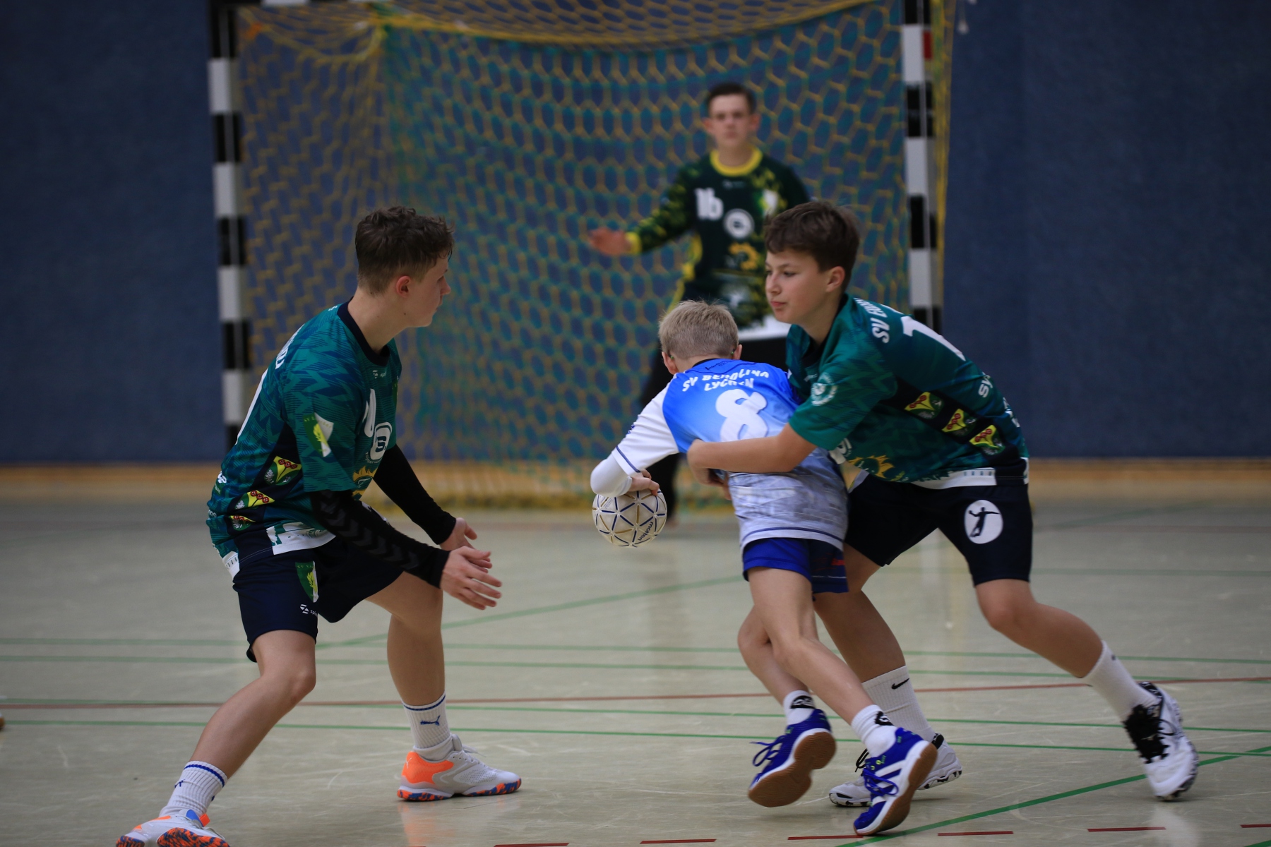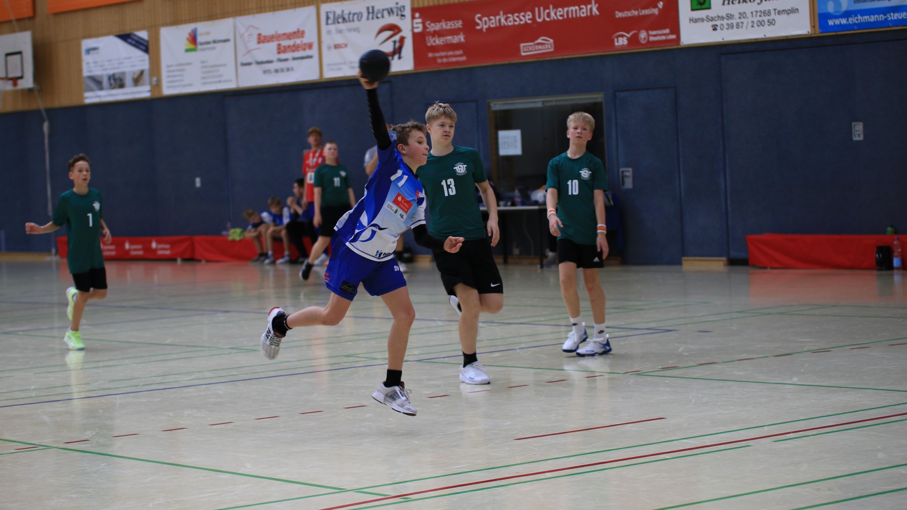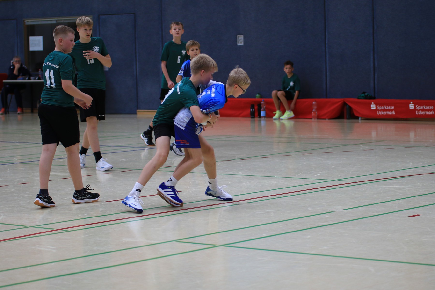 Als Nächstes lieferten sich die Mannschaften der männlichen E-Jugend des SV Berolina und des HSV Bernauer Bären II ein Spiel auf Augenhöhe, das Lychen am Ende denkbar knapp mit 21:20 für sich entscheiden konnte. Hier war Bohdan Bradulin mit sieben Toren am treffsichersten. Lychen bleibt mit 6:0 Punkten an der Tabellenspitze.