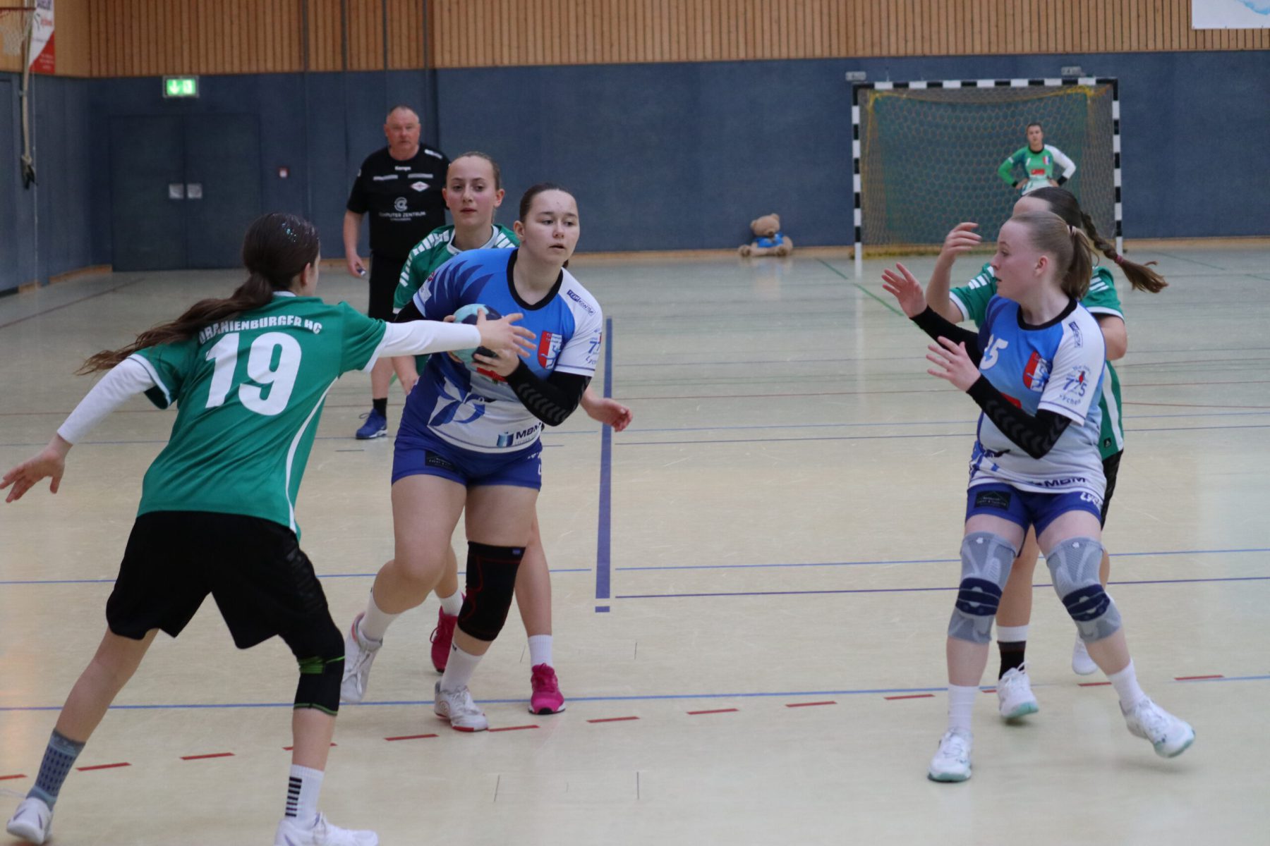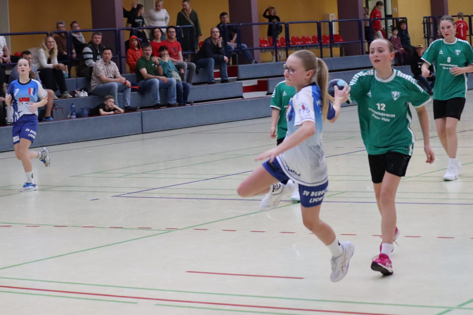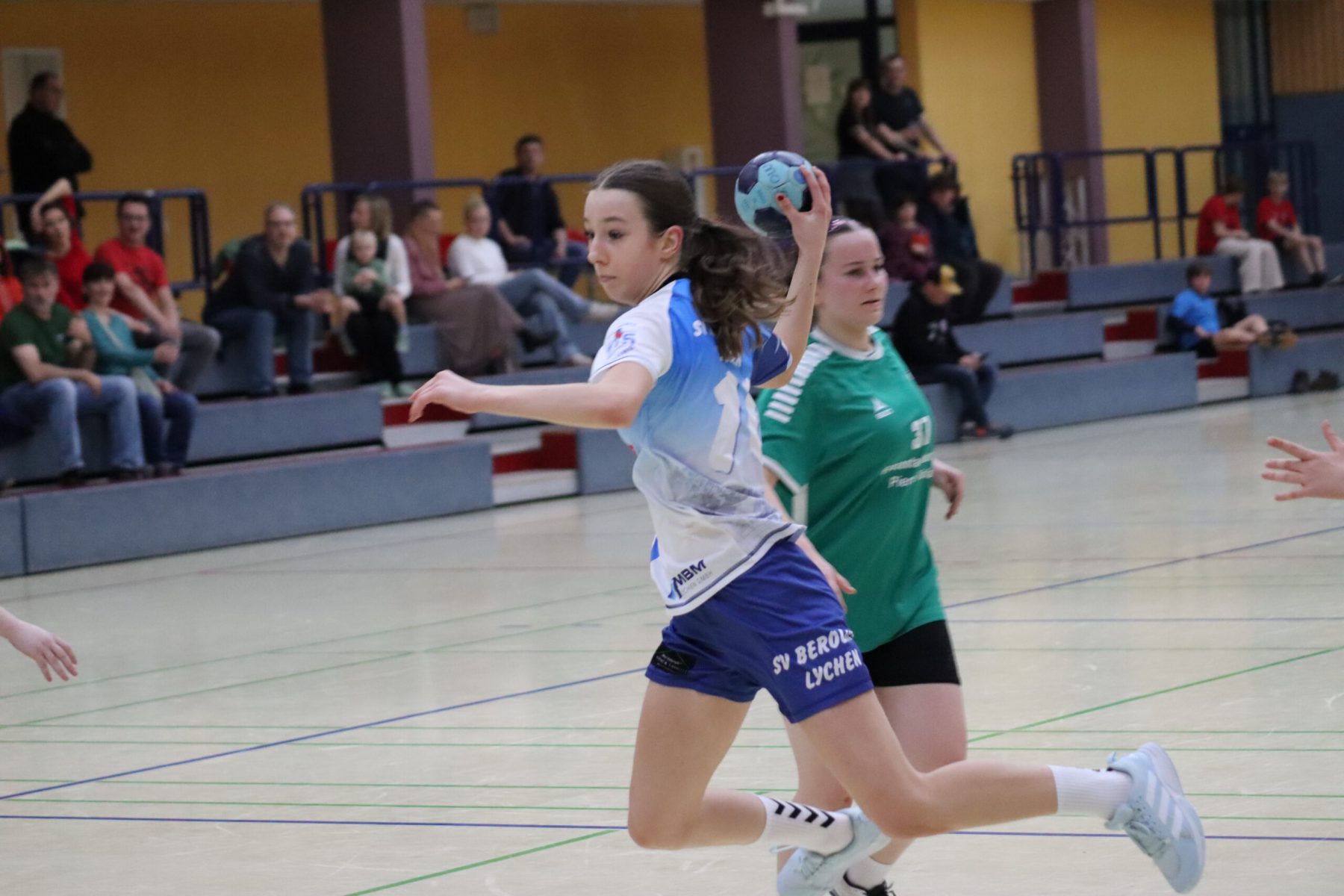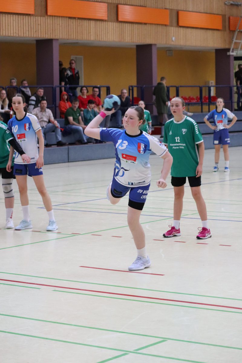 Mit großem Kampfgeist ging die Mannschaft dann in die zweite Hälfte, um die Partie noch zu drehen. Vor allem die Abwehr wurde von Minute zu Minute besser, sodass die Gegnerinnen es zunehmend schwerer hatten, sich Torchancen herauszuspielen. Beim 17:18 ging Berolina dann in Führung, woran auch die Torhüterinnen Merle Lubitz und Johanna Haase mit sehenswerten Paraden ihren Anteil hatten. Effektivste Werferin war Nele Weiss, die neunmal traf. Mit absolutem Siegeswillen und einer tollen Teamleistung konnte Lychen das Spiel am Ende für sich entscheiden. Endstand war 19:23.