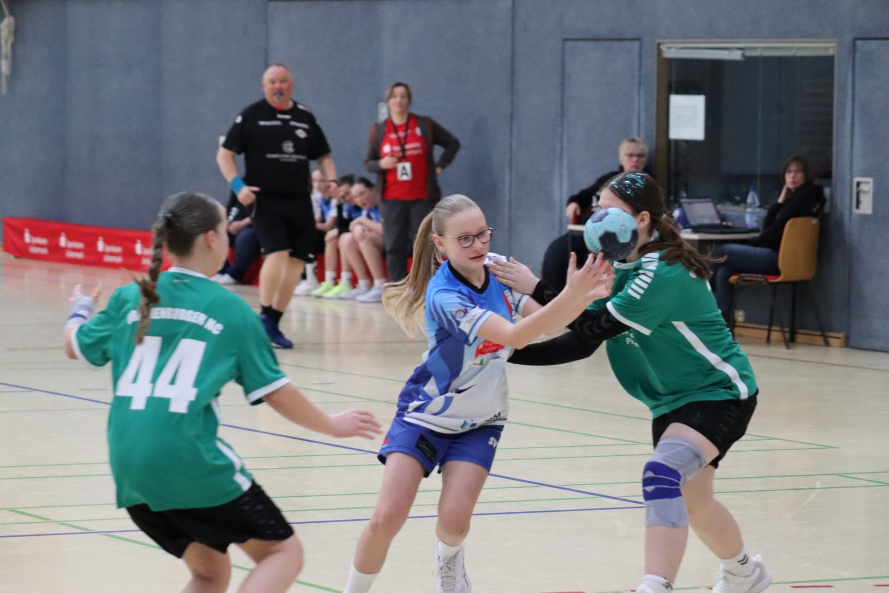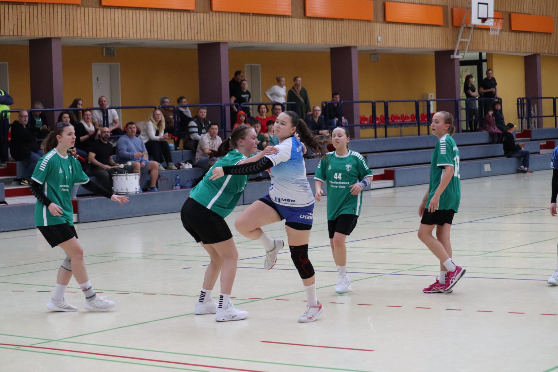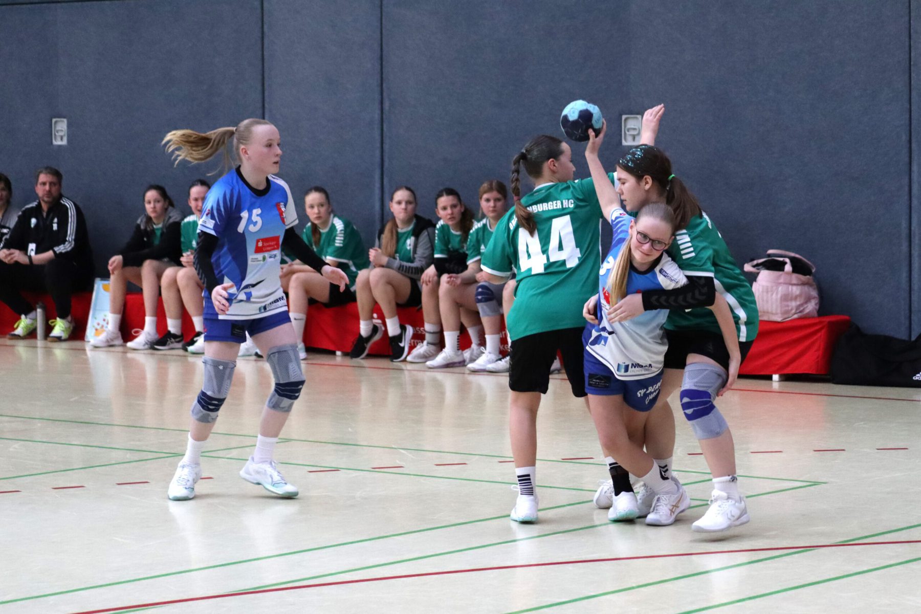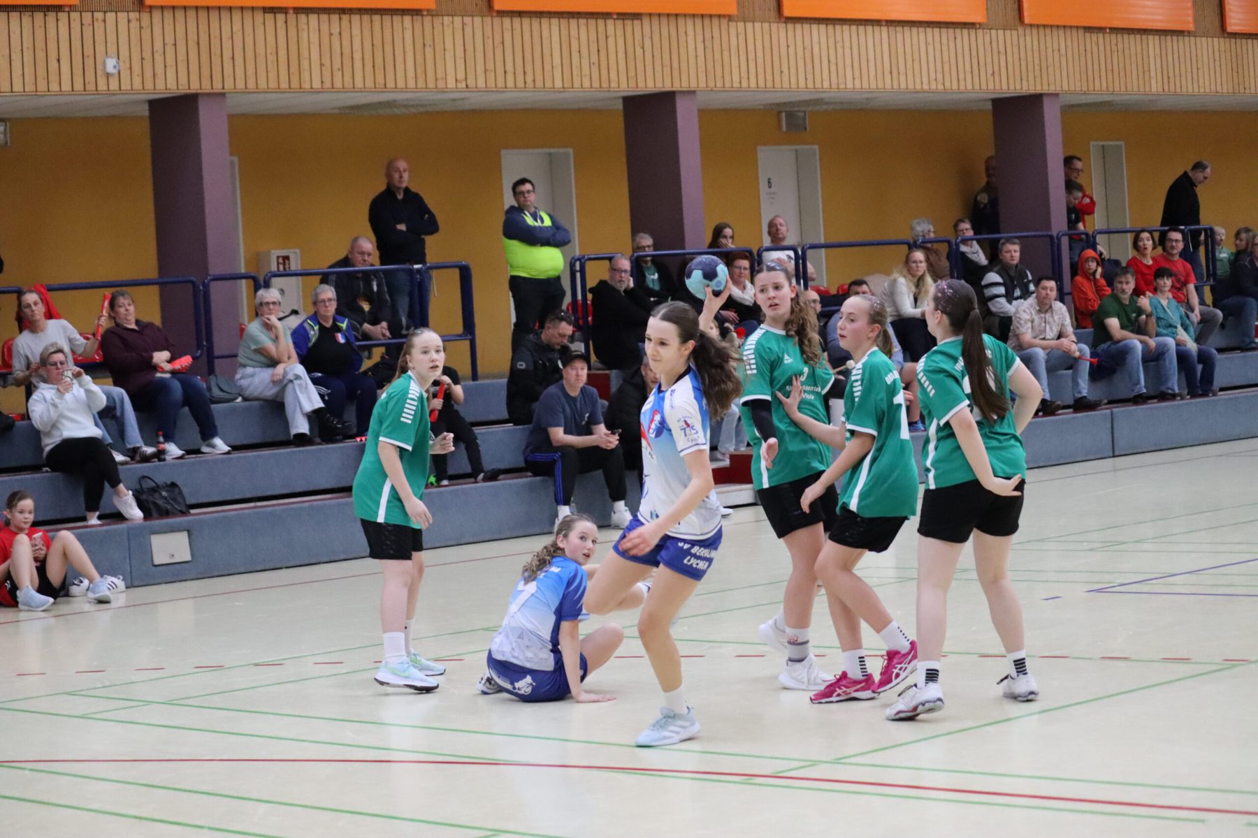 Mit großem Kampfgeist ging die Mannschaft dann in die zweite Hälfte, um die Partie noch zu drehen. Vor allem die Abwehr wurde von Minute zu Minute besser, sodass die Gegnerinnen es zunehmend schwerer hatten, sich Torchancen herauszuspielen. Beim 17:18 ging Berolina dann in Führung, woran auch die Torhüterinnen Merle Lubitz und Johanna Haase mit sehenswerten Paraden ihren Anteil hatten. Effektivste Werferin war Nele Weiss, die neunmal traf. Mit absolutem Siegeswillen und einer tollen Teamleistung konnte Lychen das Spiel am Ende für sich entscheiden. Endstand war 19:23.